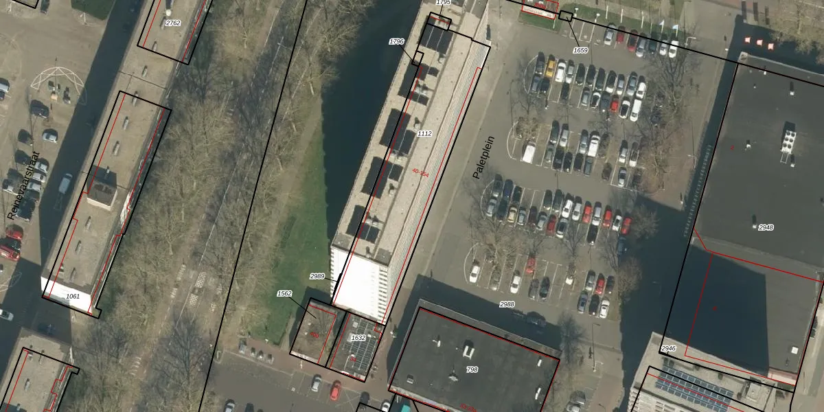 Het perceel waarop Paletplein 79 staat heeft een oppervlakte van 1067 m². Dit is een zeer groot perceel. De perceeloppervlakte wordt geregistreerd door het Kadaster. Gedetailleerde informatie over de maten van dit perceel kunt u vinden in het rapport Kadastrale kaart met maatvoering van Paletplein 79.