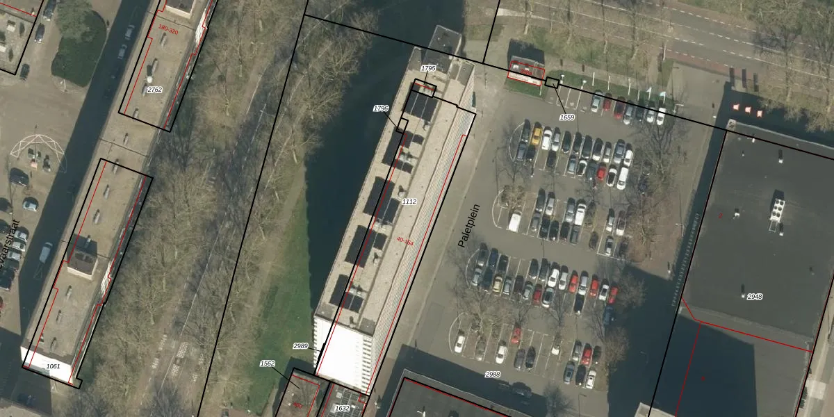 Het perceel waarop Paletplein 88 staat heeft een oppervlakte van 1067 m². Dit is een zeer groot perceel. De perceeloppervlakte wordt geregistreerd door het Kadaster. Gedetailleerde informatie over de maten van dit perceel kunt u vinden in het rapport Kadastrale kaart met maatvoering van Paletplein 88.