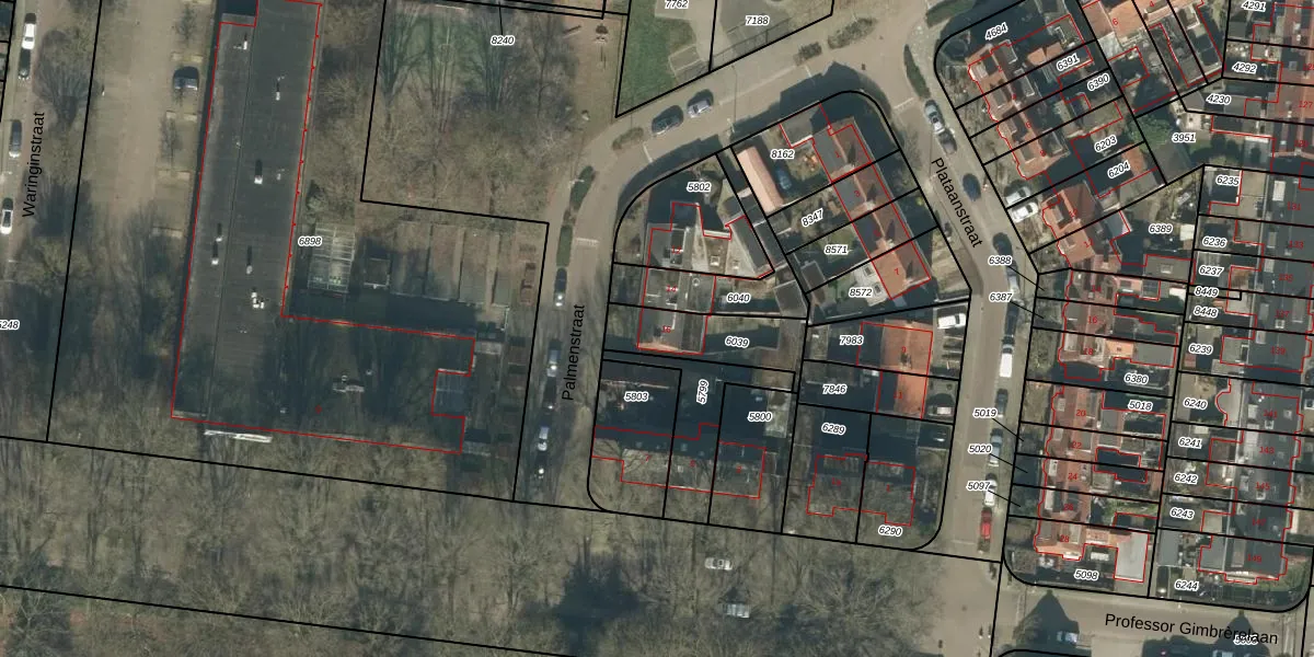 Palmenstraat 16 is gelegen op kadastraal perceel TBG01P6039. Deze kadastrale aanduiding is uniek en wordt gebruikt door het Kadaster om eigendomsrechten en andere zakelijke rechten vast te leggen. Het perceel maakt onderdeel uit van de kadastrale gemeente Tilburg.