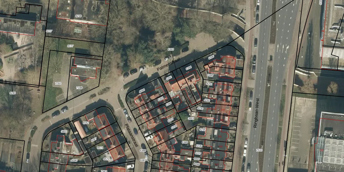 Palmenstraat 6 is gelegen op kadastraal perceel TBG01P6392. Deze kadastrale aanduiding is uniek en wordt gebruikt door het Kadaster om eigendomsrechten en andere zakelijke rechten vast te leggen. Het perceel maakt onderdeel uit van de kadastrale gemeente Tilburg.