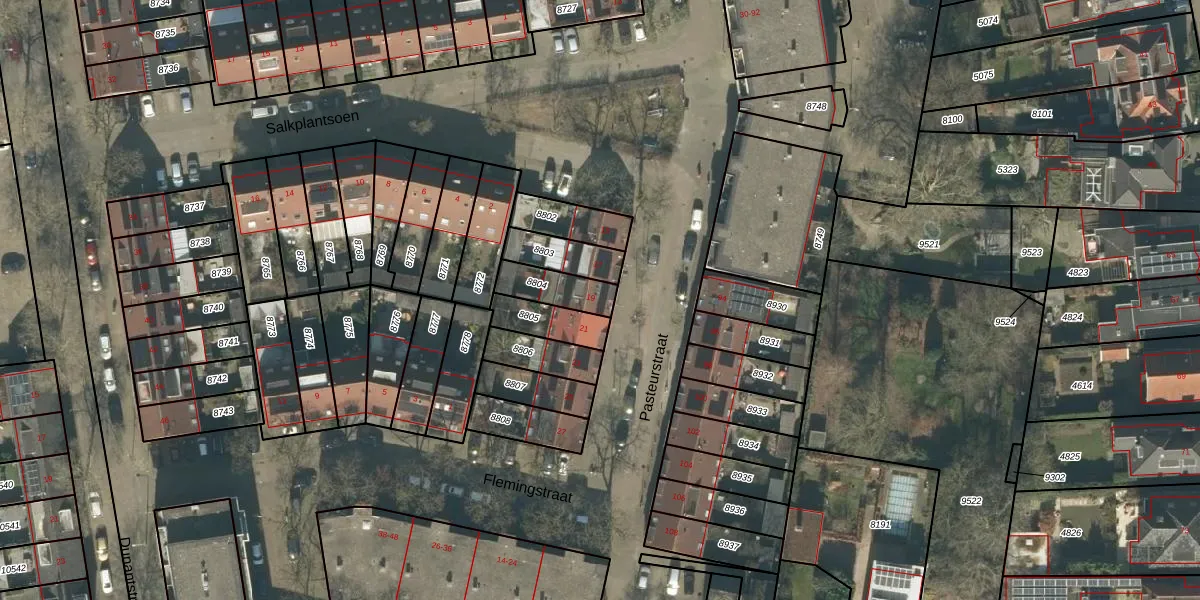 Het perceel waarop Pasteurstraat 19 staat heeft een oppervlakte van 114 m². Dit is een middelgroot perceel. De perceeloppervlakte wordt geregistreerd door het Kadaster. Gedetailleerde informatie over de maten van dit perceel kunt u vinden in het rapport Kadastrale kaart met maatvoering van Pasteurstraat 19.