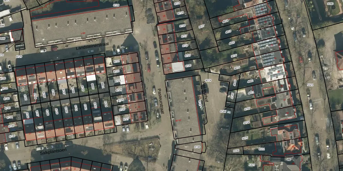 Het perceel waarop Pasteurstraat 30 staat heeft een oppervlakte van 704 m². Dit is een groot perceel. De perceeloppervlakte wordt geregistreerd door het Kadaster. Gedetailleerde informatie over de maten van dit perceel kunt u vinden in het rapport Kadastrale kaart met maatvoering van Pasteurstraat 30.