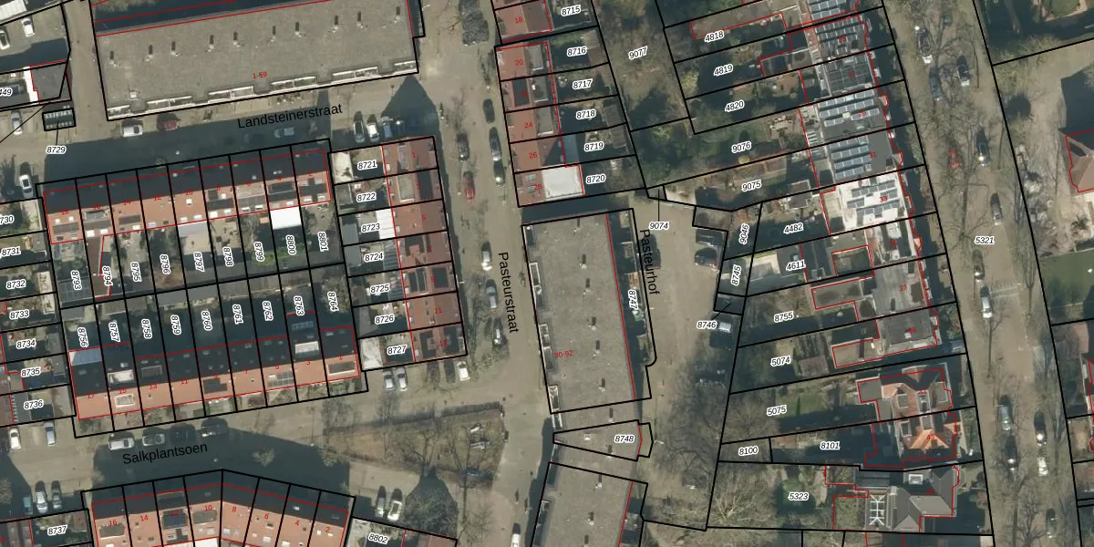 Het perceel waarop Pasteurstraat 32 staat heeft een oppervlakte van 704 m². Dit is een groot perceel. De perceeloppervlakte wordt geregistreerd door het Kadaster. Gedetailleerde informatie over de maten van dit perceel kunt u vinden in het rapport Kadastrale kaart met maatvoering van Pasteurstraat 32.