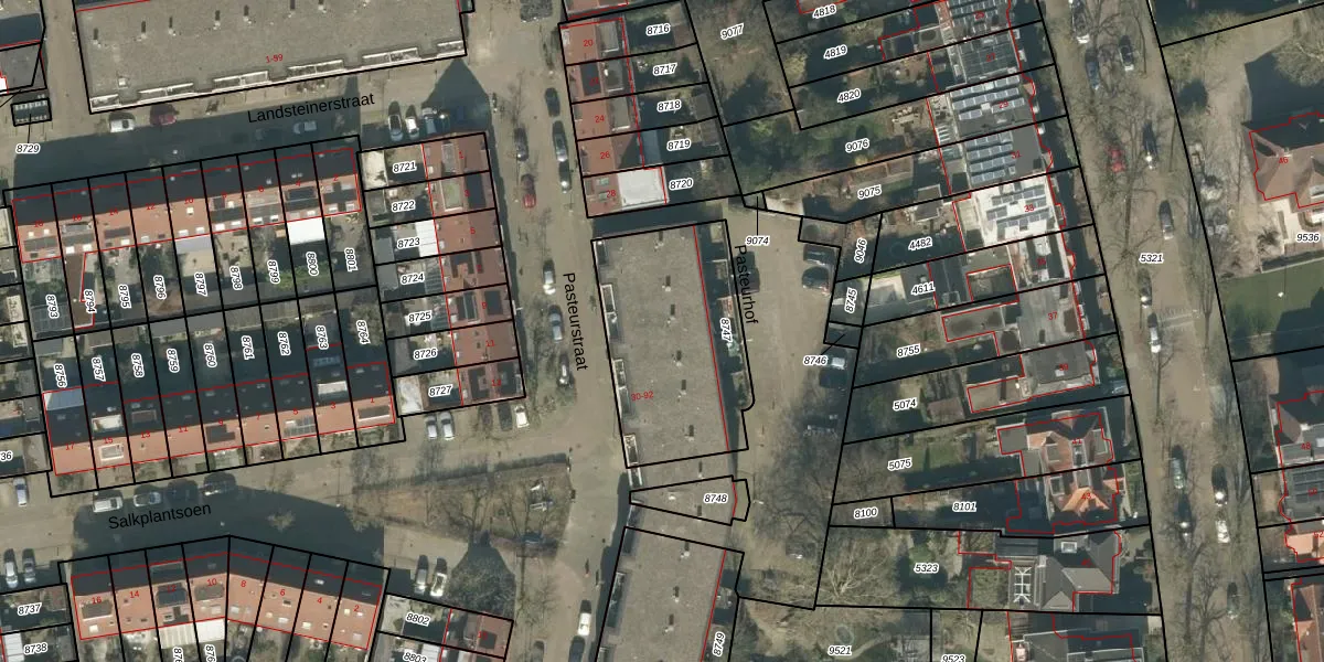 Het perceel waarop Pasteurstraat 46 staat heeft een oppervlakte van 704 m². Dit is een groot perceel. De perceeloppervlakte wordt geregistreerd door het Kadaster. Gedetailleerde informatie over de maten van dit perceel kunt u vinden in het rapport Kadastrale kaart met maatvoering van Pasteurstraat 46.