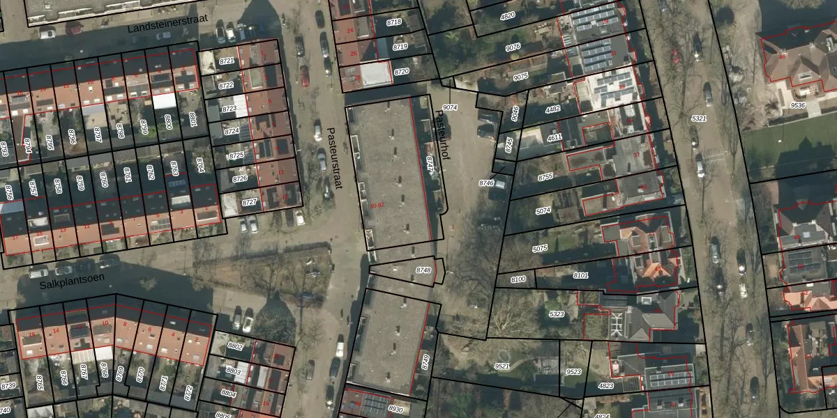Het perceel waarop Pasteurstraat 60 staat heeft een oppervlakte van 704 m². Dit is een groot perceel. De perceeloppervlakte wordt geregistreerd door het Kadaster. Gedetailleerde informatie over de maten van dit perceel kunt u vinden in het rapport Kadastrale kaart met maatvoering van Pasteurstraat 60.