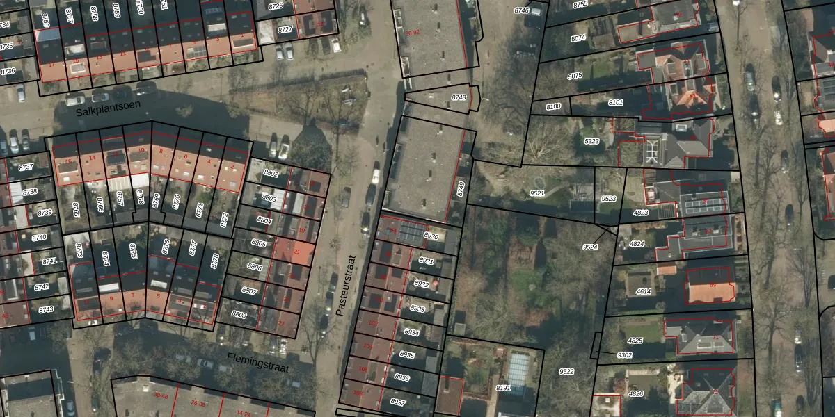 Het perceel waarop Pasteurstraat 88 staat heeft een oppervlakte van 455 m². Dit is een groot perceel. De perceeloppervlakte wordt geregistreerd door het Kadaster. Gedetailleerde informatie over de maten van dit perceel kunt u vinden in het rapport Kadastrale kaart met maatvoering van Pasteurstraat 88.