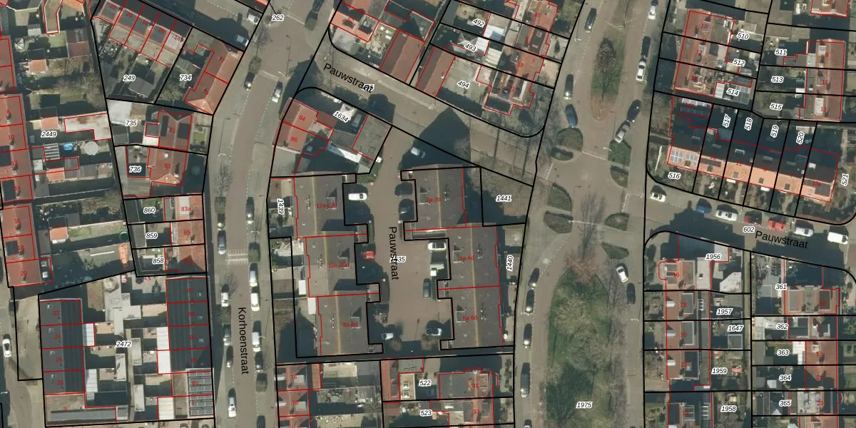 Het perceel waarop Pauwstraat 2-c staat heeft een oppervlakte van 723 m². Dit is een groot perceel. De perceeloppervlakte wordt geregistreerd door het Kadaster. Gedetailleerde informatie over de maten van dit perceel kunt u vinden in het rapport Kadastrale kaart met maatvoering van Pauwstraat 2-c.