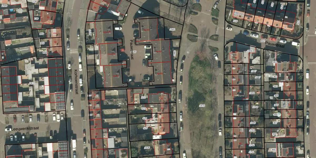 Het perceel waarop Pauwstraat 6-c staat heeft een oppervlakte van 723 m². Dit is een groot perceel. De perceeloppervlakte wordt geregistreerd door het Kadaster. Gedetailleerde informatie over de maten van dit perceel kunt u vinden in het rapport Kadastrale kaart met maatvoering van Pauwstraat 6-c.