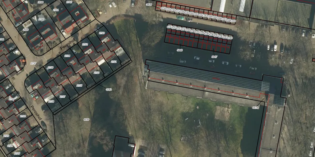 Het perceel waarop Perosistraat 147 staat heeft een oppervlakte van 1956 m². Dit is een zeer groot perceel. De perceeloppervlakte wordt geregistreerd door het Kadaster. Gedetailleerde informatie over de maten van dit perceel kunt u vinden in het rapport Kadastrale kaart met maatvoering van Perosistraat 147.