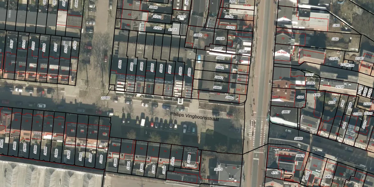 Philips Vingboonsstraat 1 is gelegen op kadastraal perceel TBG01N16659. Deze kadastrale aanduiding is uniek en wordt gebruikt door het Kadaster om eigendomsrechten en andere zakelijke rechten vast te leggen. Het perceel maakt onderdeel uit van de kadastrale gemeente Tilburg.
