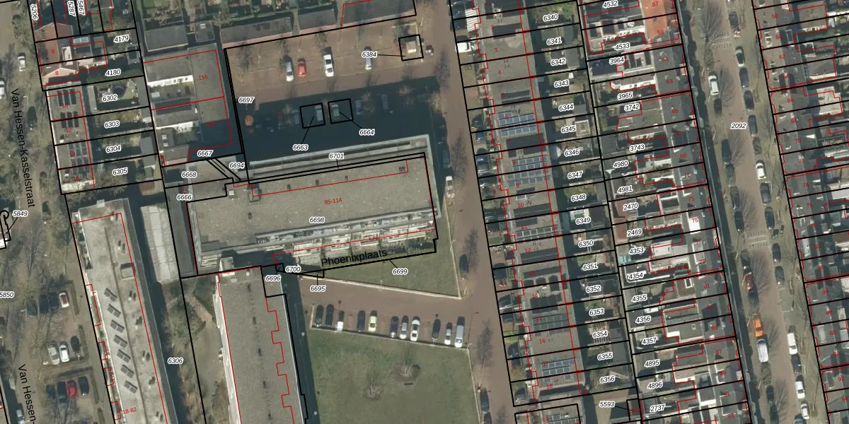 Phoenixplaats 106 is gelegen op kadastraal perceel TBG01R6698. Deze kadastrale aanduiding is uniek en wordt gebruikt door het Kadaster om eigendomsrechten en andere zakelijke rechten vast te leggen. Het perceel maakt onderdeel uit van de kadastrale gemeente Tilburg.