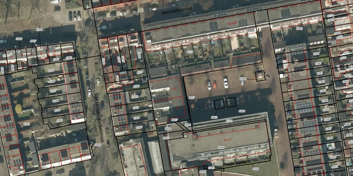 Phoenixplaats 116 is gelegen op kadastraal perceel TBG01R6079. Deze kadastrale aanduiding is uniek en wordt gebruikt door het Kadaster om eigendomsrechten en andere zakelijke rechten vast te leggen. Het perceel maakt onderdeel uit van de kadastrale gemeente Tilburg.