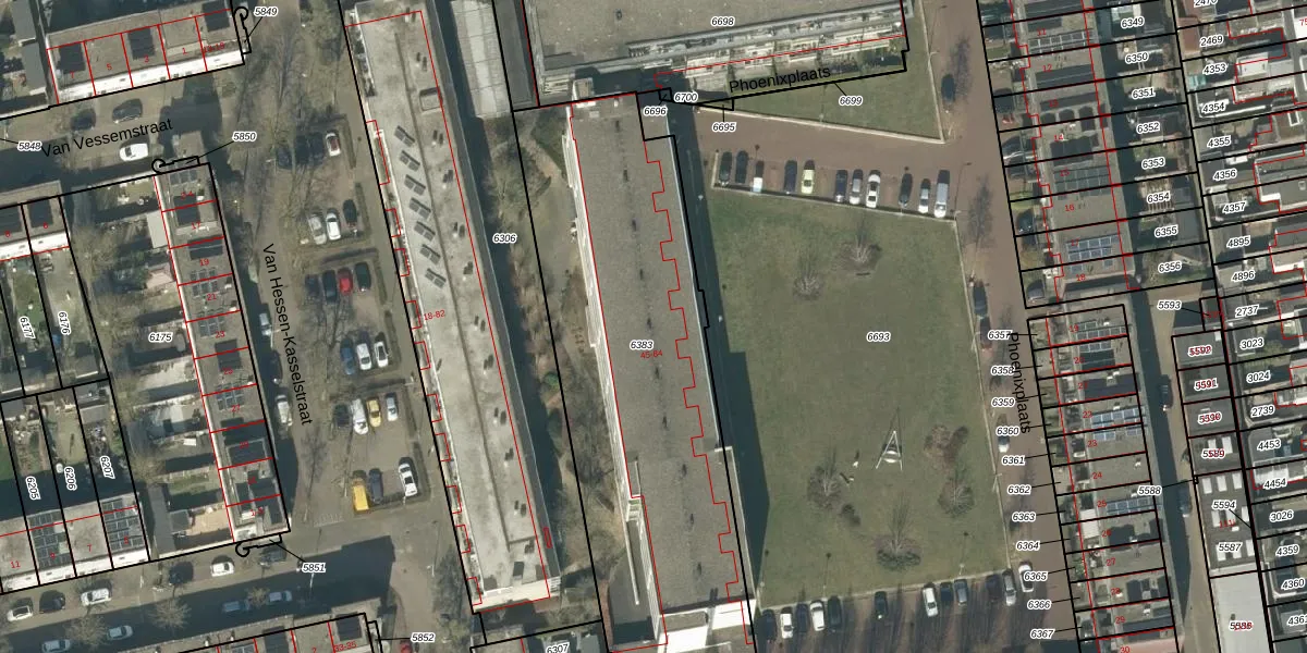 Het perceel waarop Phoenixplaats 58 staat heeft een oppervlakte van 2075 m². Dit is een zeer groot perceel. De perceeloppervlakte wordt geregistreerd door het Kadaster. Gedetailleerde informatie over de maten van dit perceel kunt u vinden in het rapport Kadastrale kaart met maatvoering van Phoenixplaats 58.