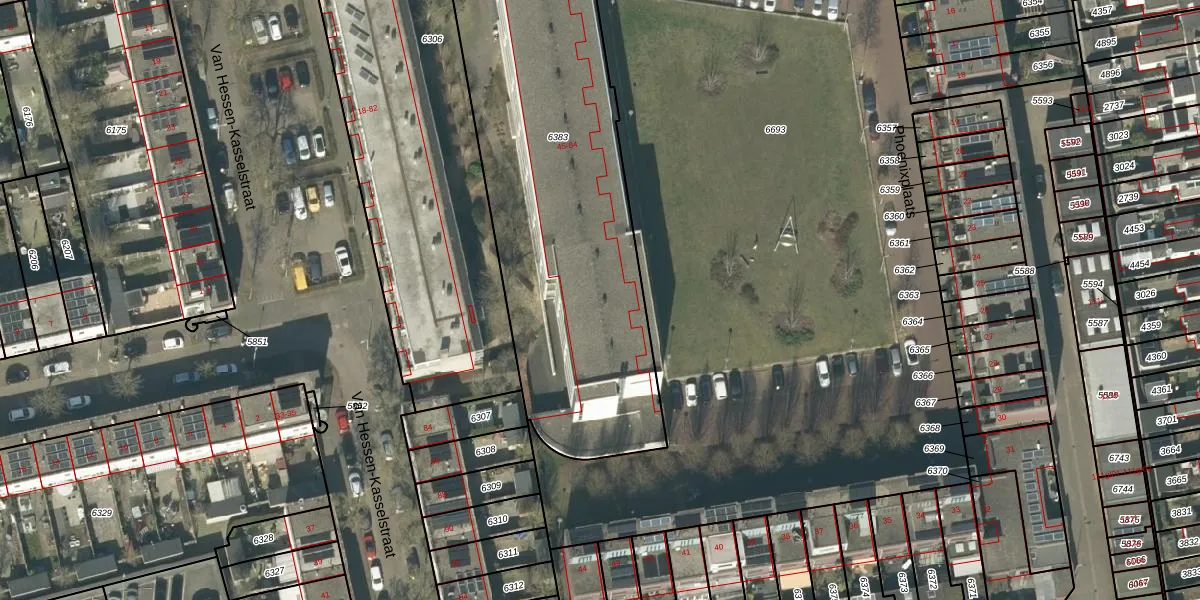 Het perceel waarop Phoenixplaats 62 staat heeft een oppervlakte van 2075 m². Dit is een zeer groot perceel. De perceeloppervlakte wordt geregistreerd door het Kadaster. Gedetailleerde informatie over de maten van dit perceel kunt u vinden in het rapport Kadastrale kaart met maatvoering van Phoenixplaats 62.