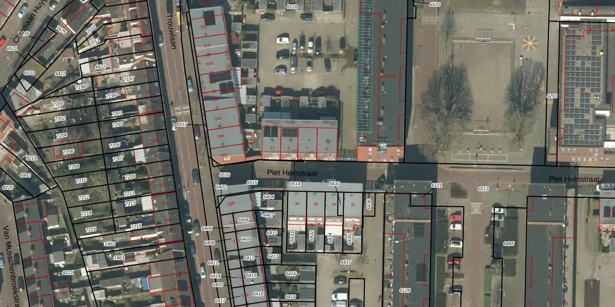 Het perceel waarop Piet Heinstraat 7 staat heeft een oppervlakte van 4537 m². Dit is een zeer groot perceel. De perceeloppervlakte wordt geregistreerd door het Kadaster. Gedetailleerde informatie over de maten van dit perceel kunt u vinden in het rapport Kadastrale kaart met maatvoering van Piet Heinstraat 7.