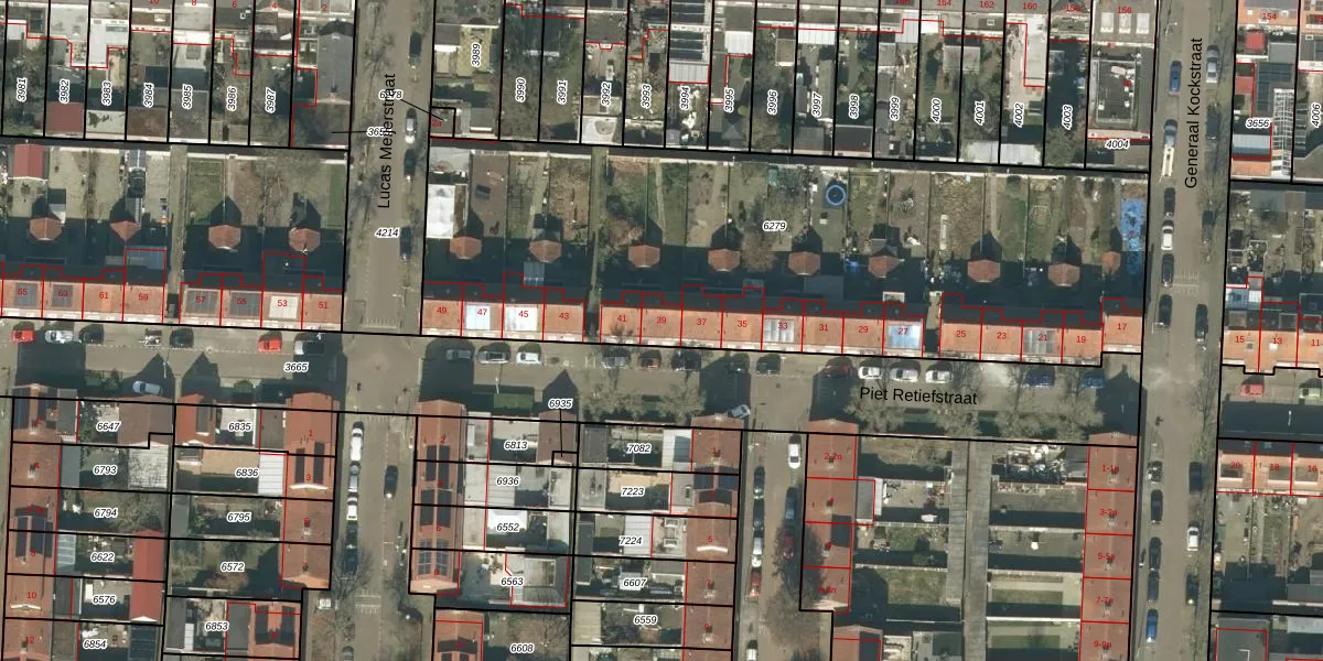 Het perceel waarop Piet Retiefstraat 39 staat heeft een oppervlakte van 3258 m². Dit is een zeer groot perceel. De perceeloppervlakte wordt geregistreerd door het Kadaster. Gedetailleerde informatie over de maten van dit perceel kunt u vinden in het rapport Kadastrale kaart met maatvoering van Piet Retiefstraat 39.