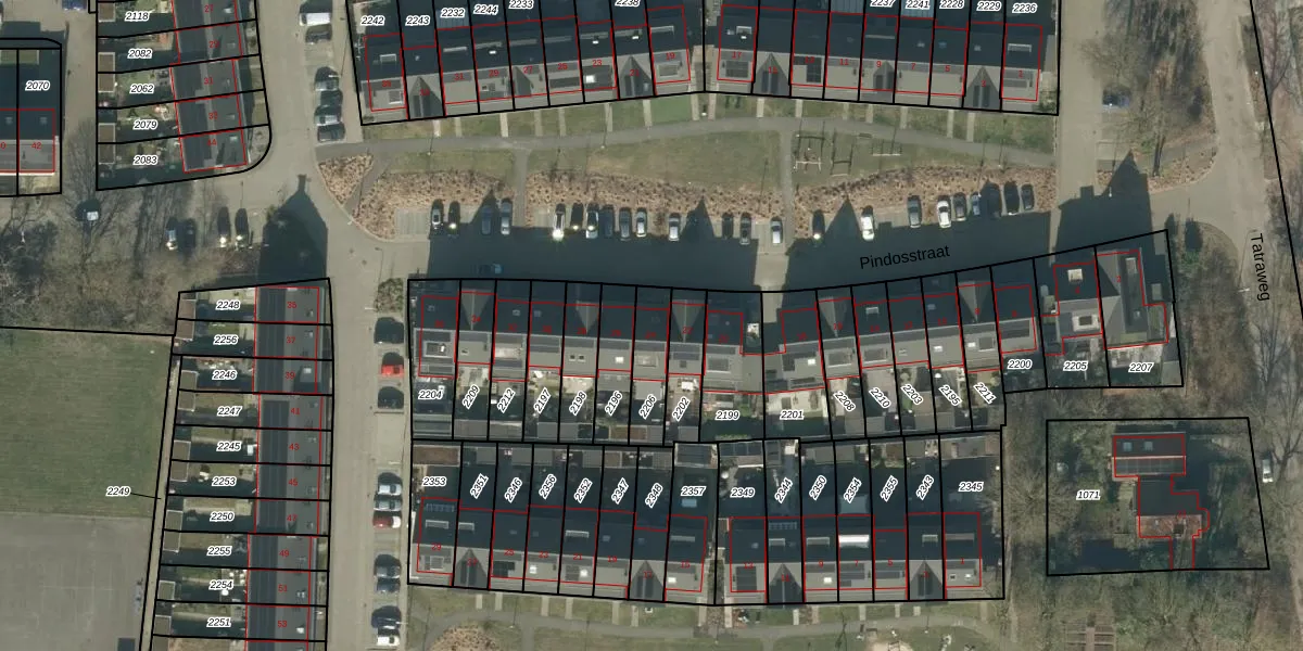 Het perceel waarop Pindosstraat 24 staat heeft een oppervlakte van 132 m². Dit is een middelgroot perceel. De perceeloppervlakte wordt geregistreerd door het Kadaster. Gedetailleerde informatie over de maten van dit perceel kunt u vinden in het rapport Kadastrale kaart met maatvoering van Pindosstraat 24.