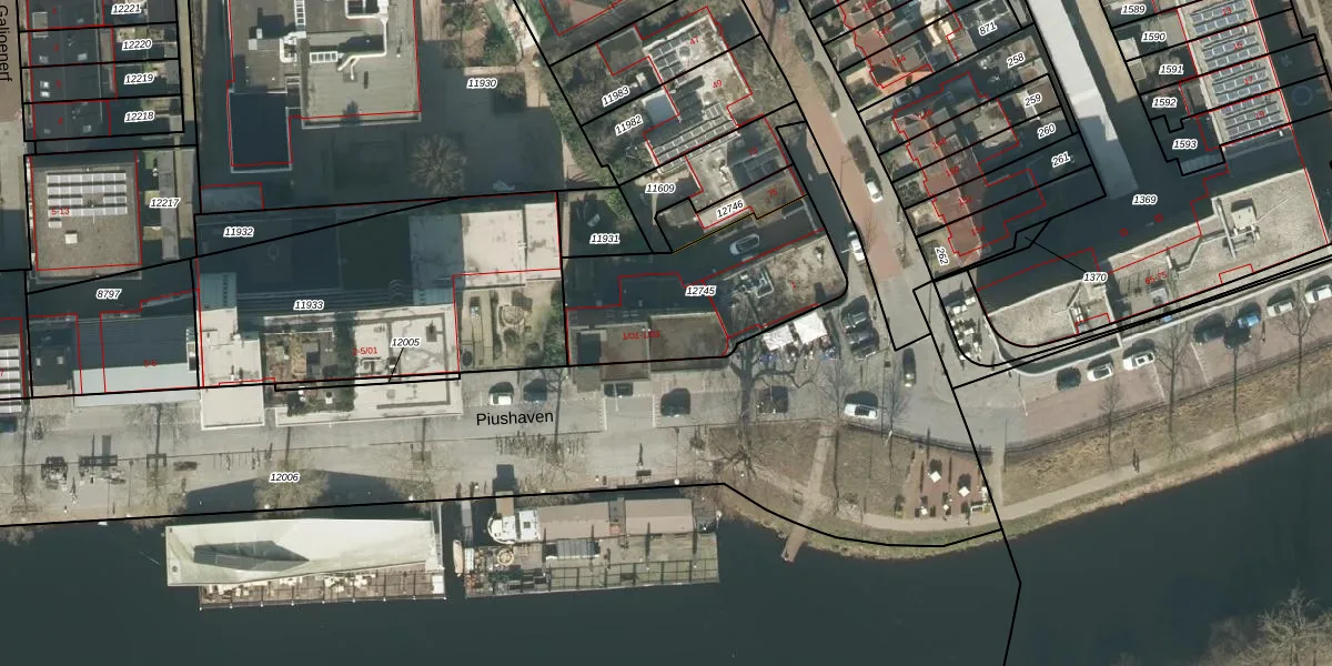Piushaven 1-01 is gelegen op kadastraal perceel TBG01M12745. Deze kadastrale aanduiding is uniek en wordt gebruikt door het Kadaster om eigendomsrechten en andere zakelijke rechten vast te leggen. Het perceel maakt onderdeel uit van de kadastrale gemeente Tilburg.