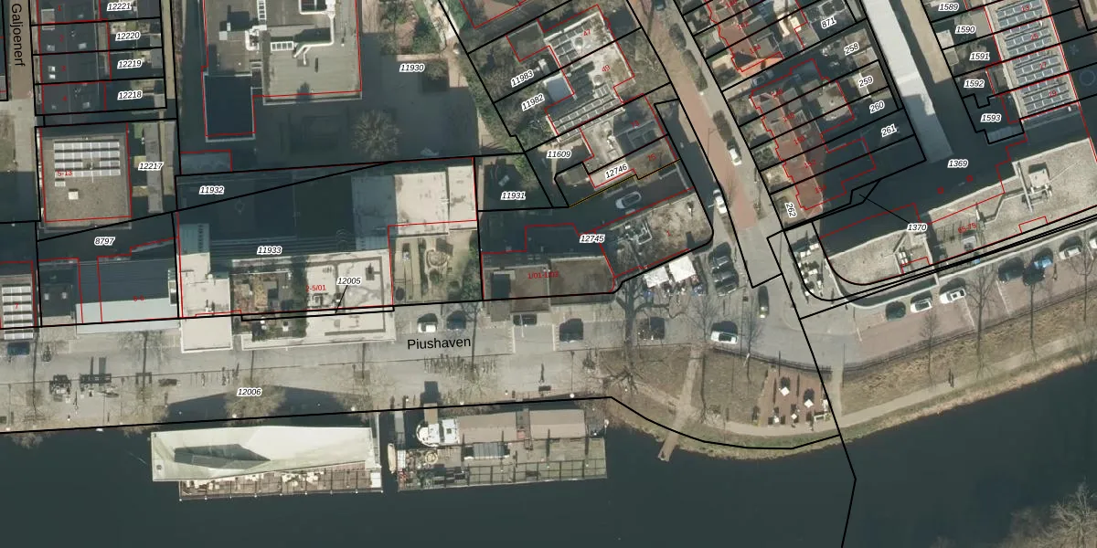 Piushaven 1-02 is gelegen op kadastraal perceel TBG01M12745. Deze kadastrale aanduiding is uniek en wordt gebruikt door het Kadaster om eigendomsrechten en andere zakelijke rechten vast te leggen. Het perceel maakt onderdeel uit van de kadastrale gemeente Tilburg.