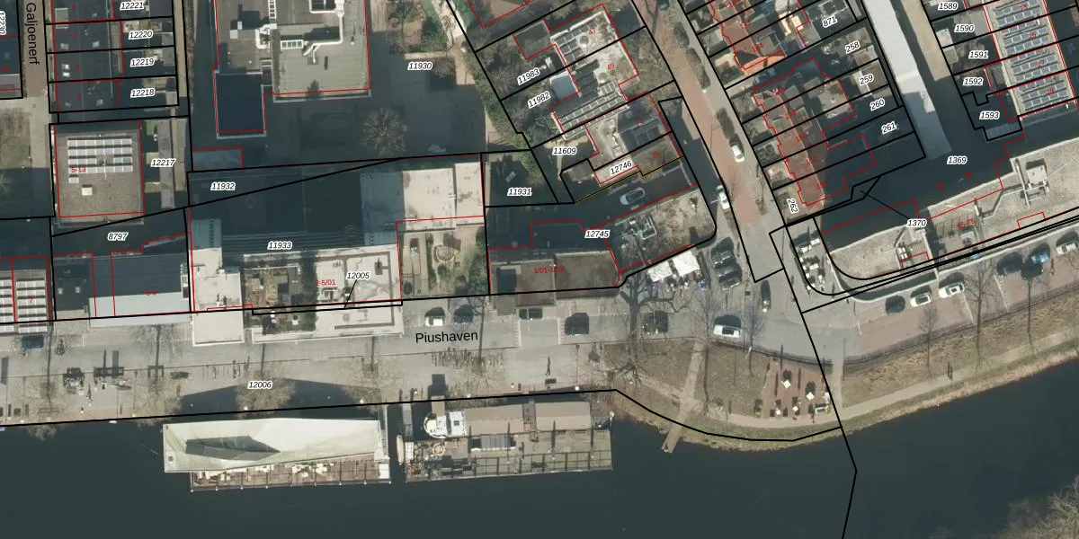 Het perceel waarop Piushaven 1-03 staat heeft een oppervlakte van 685 m². Dit is een groot perceel. De perceeloppervlakte wordt geregistreerd door het Kadaster. Gedetailleerde informatie over de maten van dit perceel kunt u vinden in het rapport Kadastrale kaart met maatvoering van Piushaven 1-03.