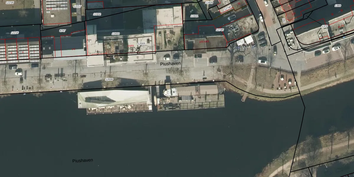 Piushaven 1-b is gelegen op kadastraal perceel TBG01M12145. Deze kadastrale aanduiding is uniek en wordt gebruikt door het Kadaster om eigendomsrechten en andere zakelijke rechten vast te leggen. Het perceel maakt onderdeel uit van de kadastrale gemeente Tilburg.