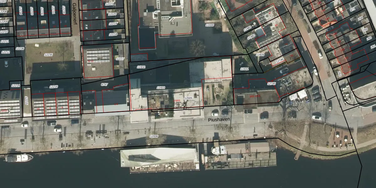 Het perceel waarop Piushaven 4-03 staat heeft een oppervlakte van 1340 m². Dit is een zeer groot perceel. De perceeloppervlakte wordt geregistreerd door het Kadaster. Gedetailleerde informatie over de maten van dit perceel kunt u vinden in het rapport Kadastrale kaart met maatvoering van Piushaven 4-03.