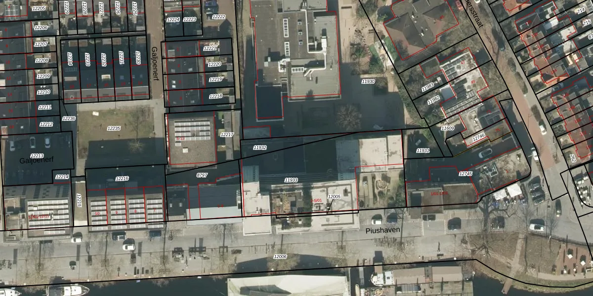 Het perceel waarop Piushaven 4-18 staat heeft een oppervlakte van 1340 m². Dit is een zeer groot perceel. De perceeloppervlakte wordt geregistreerd door het Kadaster. Gedetailleerde informatie over de maten van dit perceel kunt u vinden in het rapport Kadastrale kaart met maatvoering van Piushaven 4-18.