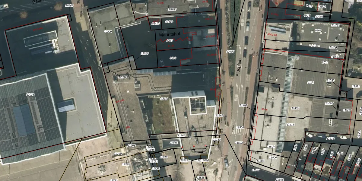 Piusplein 28-61 is gelegen op kadastraal perceel TBG01M12093. Deze kadastrale aanduiding is uniek en wordt gebruikt door het Kadaster om eigendomsrechten en andere zakelijke rechten vast te leggen. Het perceel maakt onderdeel uit van de kadastrale gemeente Tilburg.