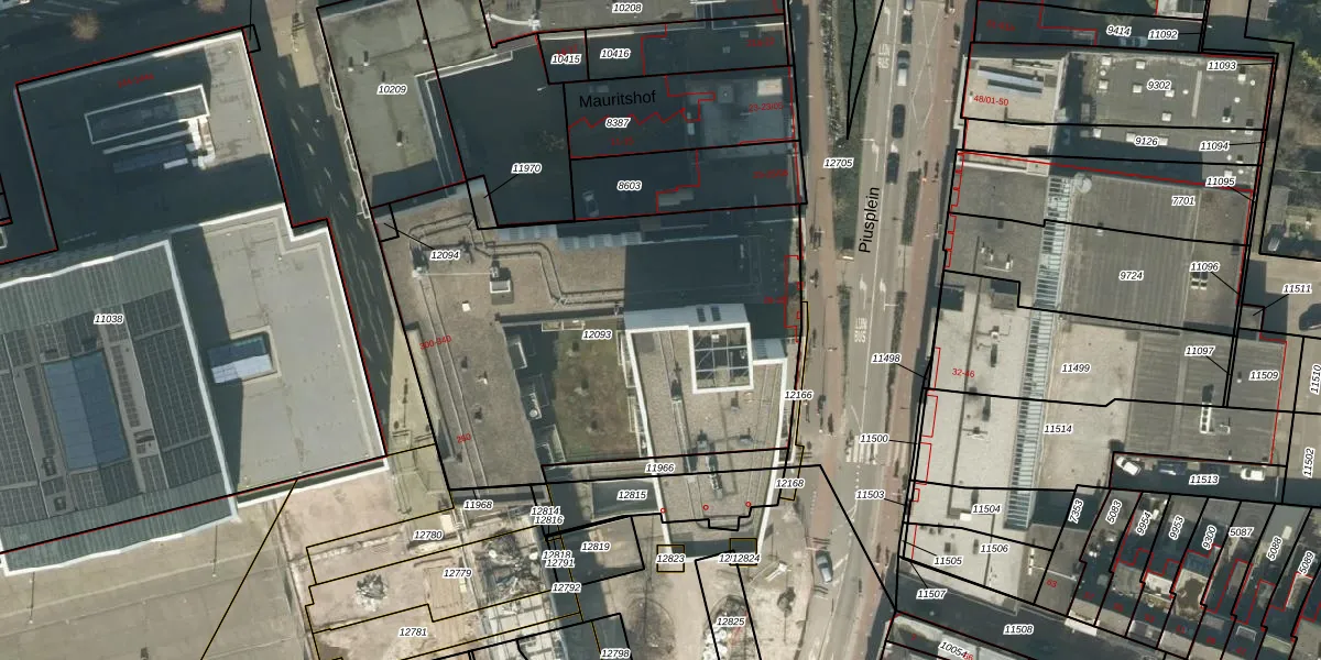 Piusplein 28-60 is gelegen op kadastraal perceel TBG01M12093. Deze kadastrale aanduiding is uniek en wordt gebruikt door het Kadaster om eigendomsrechten en andere zakelijke rechten vast te leggen. Het perceel maakt onderdeel uit van de kadastrale gemeente Tilburg.
