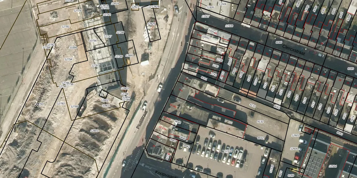 Gebruik de zoekbalk of klik op een perceel voor informatie over de adressen binnen dit perceel.