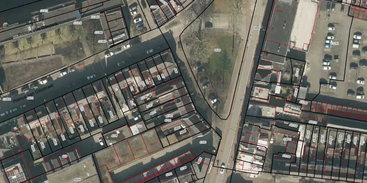 Gebruik de zoekbalk of klik op een perceel voor informatie over de adressen binnen dit perceel.