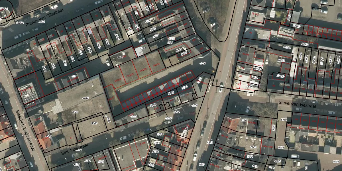 Het perceel waarop het adres ligt is TBG01-R-5700. De afkorting 'TBG01' staat voor kadastrale gemeente Tilburg. De gemiddelde perceeloppervlakte in de kadastrale gemeente Tilburg is 1264,33 m². Dit perceel is met zijn 1349 m² dus groter dan gemiddeld. Het kleinste perceel in de kadastrale gemeente is 0 m² groot. De grootste perceeloppervlakte is 87,4 ha. Op het perceel zijn 21 adressen aanwezig. De huidige grenzen van het perceel zijn digitaal in de Basisregistratie Kadaster (BRK) geregistreerd op 16-05-2019.