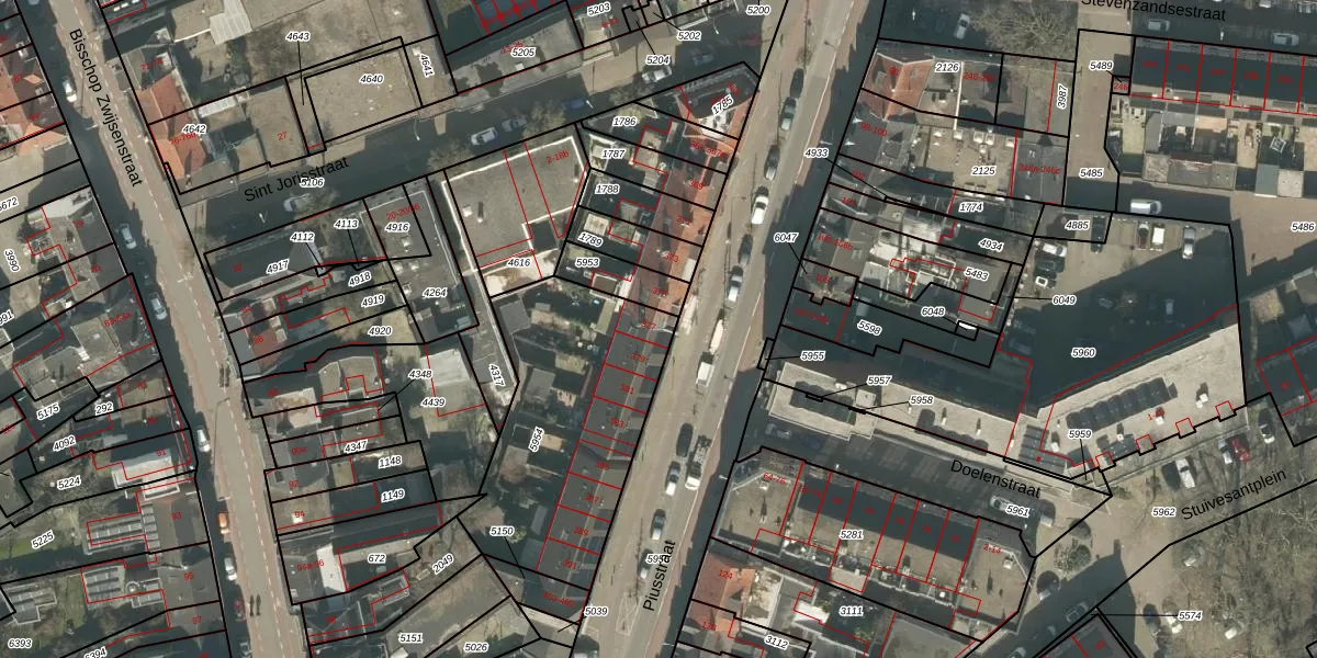Het perceel waarop Piusstraat 377 staat heeft een oppervlakte van 939 m². Dit is een groot perceel. De perceeloppervlakte wordt geregistreerd door het Kadaster. Gedetailleerde informatie over de maten van dit perceel kunt u vinden in het rapport Kadastrale kaart met maatvoering van Piusstraat 377.
