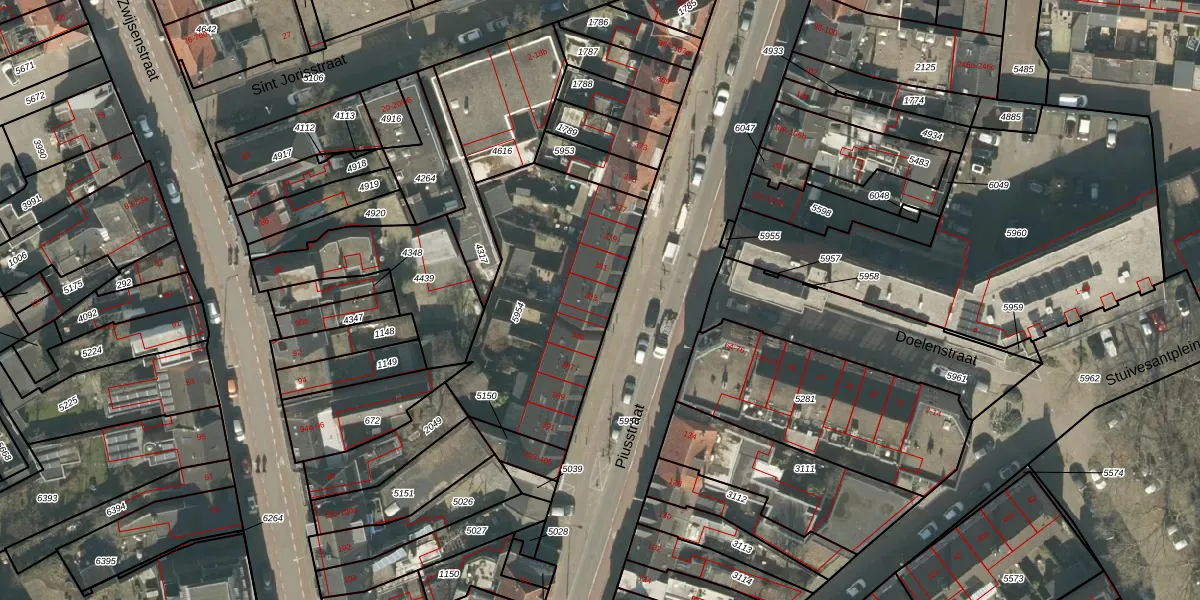 Piusstraat 383 is gelegen op kadastraal perceel TBG01R5954. Deze kadastrale aanduiding is uniek en wordt gebruikt door het Kadaster om eigendomsrechten en andere zakelijke rechten vast te leggen. Het perceel maakt onderdeel uit van de kadastrale gemeente Tilburg.