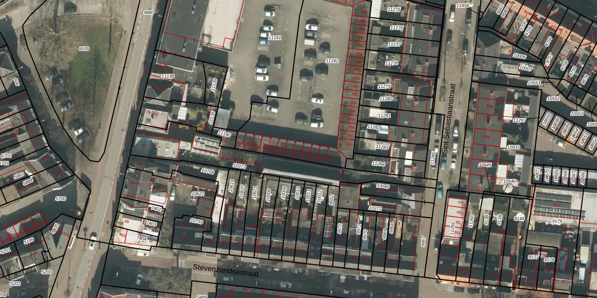 Het adres is gelegen op perceel 11142 in de sectie M en de kadastrale gemeente Tilburg. De kadastrale aanduiding is aldus TBG01-M-11142. Het perceel is met 1720 m² relatief groot. Het gemiddelde ligt in de kadastrale gemeente Tilburg op 1264,33 m². Het grootste perceel in de kadastrale gemeente is 87,4 ha. Het kleinste perceel heeft een oppervlakte van 0 m². Op het perceel liggen in totaal 36 adressen. De huidige grenzen van het perceel zijn digitaal in de Basisregistratie Kadaster (BRK) geregistreerd op 21-03-2006.