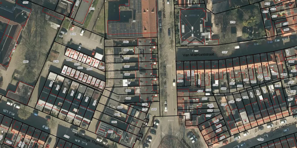 Het perceel waarop Poirtersstraat 13 staat heeft een oppervlakte van 194 m². Dit is een middelgroot perceel. De perceeloppervlakte wordt geregistreerd door het Kadaster. Gedetailleerde informatie over de maten van dit perceel kunt u vinden in het rapport Kadastrale kaart met maatvoering van Poirtersstraat 13.