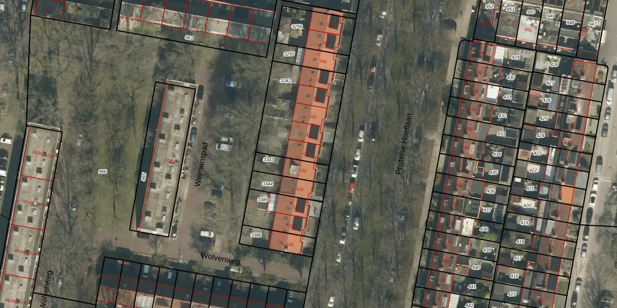 Postelse Hoeflaan 119 is gelegen op kadastraal perceel TBG01AC3342. Deze kadastrale aanduiding is uniek en wordt gebruikt door het Kadaster om eigendomsrechten en andere zakelijke rechten vast te leggen. Het perceel maakt onderdeel uit van de kadastrale gemeente Tilburg.