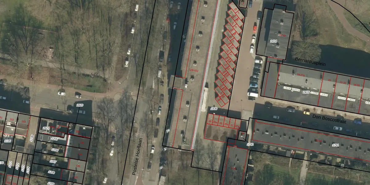 Postelse Hoeflaan 136 is gelegen op kadastraal perceel TBG01AC1836. Deze kadastrale aanduiding is uniek en wordt gebruikt door het Kadaster om eigendomsrechten en andere zakelijke rechten vast te leggen. Het perceel maakt onderdeel uit van de kadastrale gemeente Tilburg.