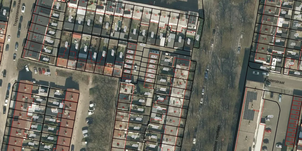 Het perceel waarop Postelse Hoeflaan 15 staat heeft een oppervlakte van 35 m². Dit is een klein perceel. De perceeloppervlakte wordt geregistreerd door het Kadaster. Gedetailleerde informatie over de maten van dit perceel kunt u vinden in het rapport Kadastrale kaart met maatvoering van Postelse Hoeflaan 15.