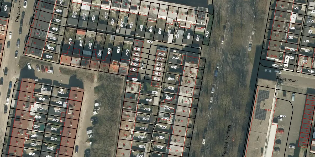 Het perceel waarop Postelse Hoeflaan 17 staat heeft een oppervlakte van 35 m². Dit is een klein perceel. De perceeloppervlakte wordt geregistreerd door het Kadaster. Gedetailleerde informatie over de maten van dit perceel kunt u vinden in het rapport Kadastrale kaart met maatvoering van Postelse Hoeflaan 17.