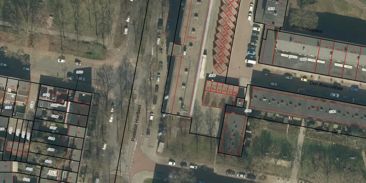 Postelse Hoeflaan 200 is gelegen op kadastraal perceel TBG01AC1836. Deze kadastrale aanduiding is uniek en wordt gebruikt door het Kadaster om eigendomsrechten en andere zakelijke rechten vast te leggen. Het perceel maakt onderdeel uit van de kadastrale gemeente Tilburg.