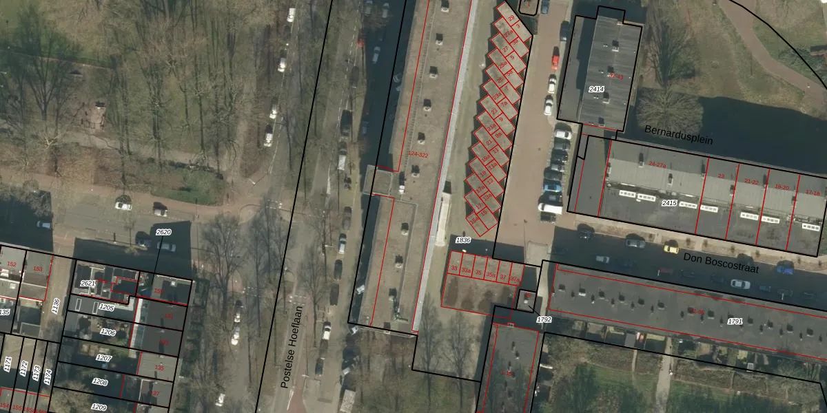 Postelse Hoeflaan 216 is gelegen op kadastraal perceel TBG01AC1836. Deze kadastrale aanduiding is uniek en wordt gebruikt door het Kadaster om eigendomsrechten en andere zakelijke rechten vast te leggen. Het perceel maakt onderdeel uit van de kadastrale gemeente Tilburg.