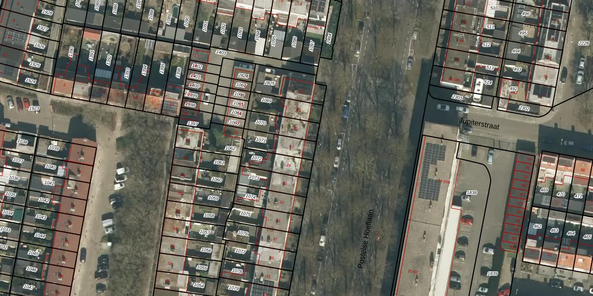 Het perceel waarop Postelse Hoeflaan 27 staat heeft een oppervlakte van 156 m². Dit is een middelgroot perceel. De perceeloppervlakte wordt geregistreerd door het Kadaster. Gedetailleerde informatie over de maten van dit perceel kunt u vinden in het rapport Kadastrale kaart met maatvoering van Postelse Hoeflaan 27.