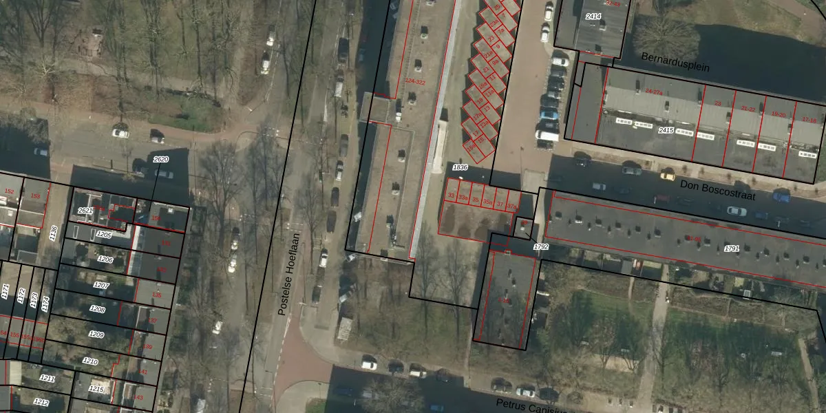 Postelse Hoeflaan 300 is gelegen op kadastraal perceel TBG01AC1836. Deze kadastrale aanduiding is uniek en wordt gebruikt door het Kadaster om eigendomsrechten en andere zakelijke rechten vast te leggen. Het perceel maakt onderdeel uit van de kadastrale gemeente Tilburg.