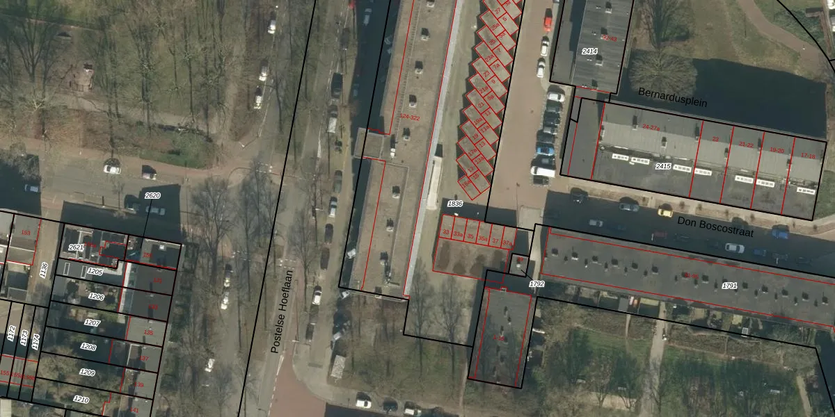 Postelse Hoeflaan 318 is gelegen op kadastraal perceel TBG01AC1836. Deze kadastrale aanduiding is uniek en wordt gebruikt door het Kadaster om eigendomsrechten en andere zakelijke rechten vast te leggen. Het perceel maakt onderdeel uit van de kadastrale gemeente Tilburg.