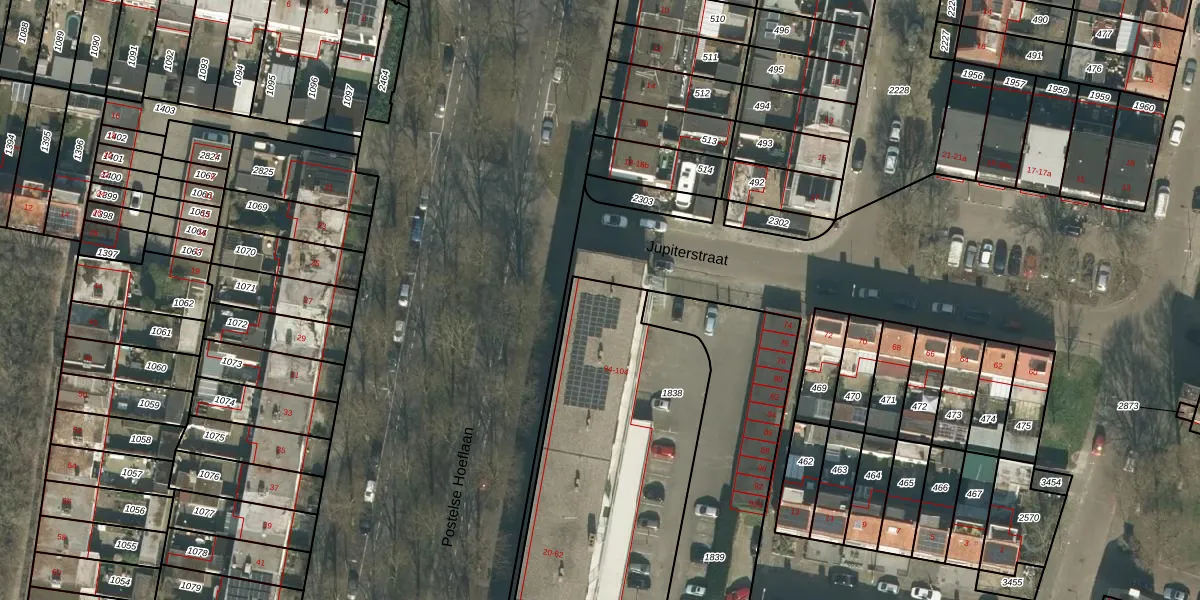 Het perceel waarop Postelse Hoeflaan 32 staat heeft een oppervlakte van 2174 m². Dit is een zeer groot perceel. De perceeloppervlakte wordt geregistreerd door het Kadaster. Gedetailleerde informatie over de maten van dit perceel kunt u vinden in het rapport Kadastrale kaart met maatvoering van Postelse Hoeflaan 32.