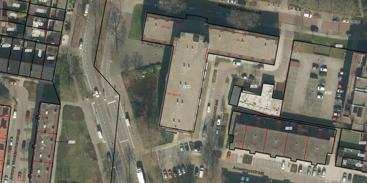 Het adres is gelegen op perceel 2341 in de sectie AC en de kadastrale gemeente Tilburg. De kadastrale aanduiding is aldus TBG01-AC-2341. De oppervlakte van het perceel is 2031 m². Dat is groter dan gemiddeld in Tilburg, waar de gemiddelde perceeloppervlakte op 1264,33 m² ligt. Het kleinste perceel in de kadastrale gemeente is 0 m² groot. De grootste perceeloppervlakte is 87,4 ha. Op het perceel liggen in totaal 73 adressen. De huidige grenzen van het perceel zijn digitaal in de Basisregistratie Kadaster (BRK) geregistreerd op 30-05-2012.