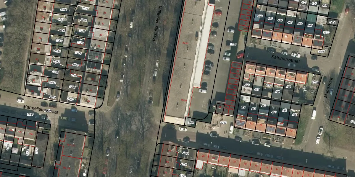 Het perceel waarop Postelse Hoeflaan 40 staat heeft een oppervlakte van 2174 m². Dit is een zeer groot perceel. De perceeloppervlakte wordt geregistreerd door het Kadaster. Gedetailleerde informatie over de maten van dit perceel kunt u vinden in het rapport Kadastrale kaart met maatvoering van Postelse Hoeflaan 40.