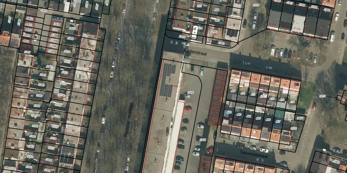 Het perceel waarop Postelse Hoeflaan 48-b staat heeft een oppervlakte van 2174 m². Dit is een zeer groot perceel. De perceeloppervlakte wordt geregistreerd door het Kadaster. Gedetailleerde informatie over de maten van dit perceel kunt u vinden in het rapport Kadastrale kaart met maatvoering van Postelse Hoeflaan 48-b.