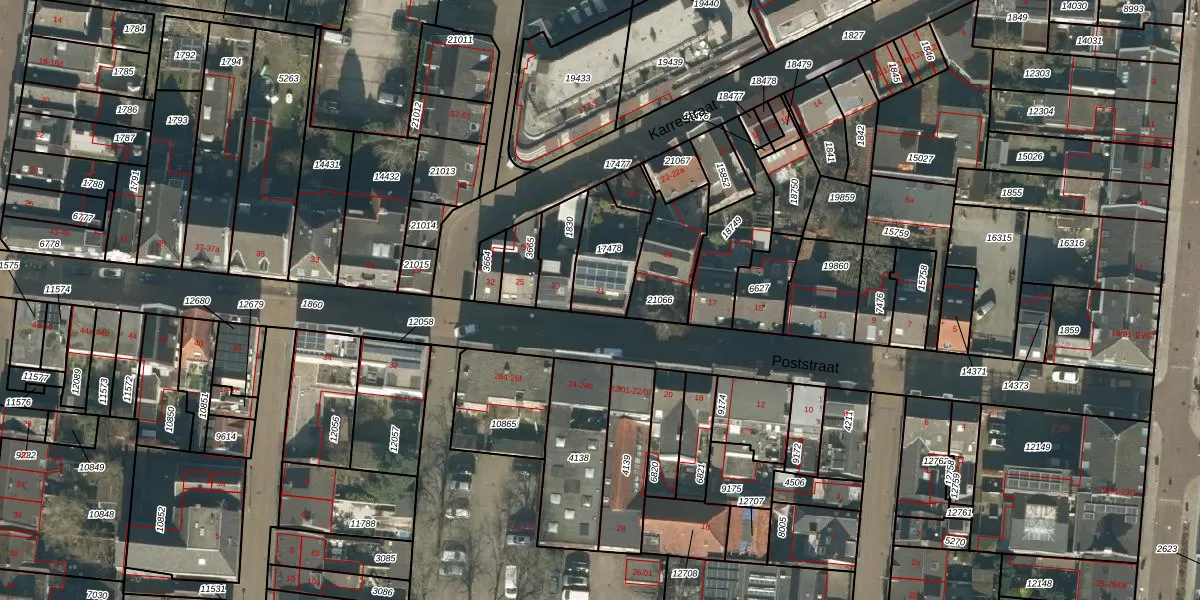 Poststraat 21 is gelegen op kadastraal perceel TBG01N17478. Deze kadastrale aanduiding is uniek en wordt gebruikt door het Kadaster om eigendomsrechten en andere zakelijke rechten vast te leggen. Het perceel maakt onderdeel uit van de kadastrale gemeente Tilburg.